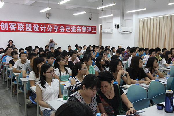 創(chuàng)客聯(lián)盟訊(記者 王柱輝)學(xué)生如何培養(yǎng)自身的設(shè)計(jì)能力?企業(yè)如何培養(yǎng)年輕設(shè)計(jì)師群體?被譽(yù)為“第三次微型工業(yè)革命”的3D打印技術(shù)前景如何?9月17日上午,由東莞市創(chuàng)客聯(lián)盟網(wǎng)絡(luò)科技有限公司主辦的“創(chuàng)客聯(lián)盟·設(shè)計(jì)分享會(huì)”在東莞理工學(xué)院松山湖校區(qū)舉行。會(huì)議邀請(qǐng)了深圳市生活匯貿(mào)易發(fā)展有限公司(簡(jiǎn)稱(chēng)“HG”)執(zhí)行董事楊朝順、設(shè)計(jì)總監(jiān)謝先生、Delonghi集團(tuán)的彭工等嘉賓到場(chǎng),和近百名機(jī)械工程學(xué)院的學(xué)生分享自己設(shè)計(jì)生涯中的心路歷程。