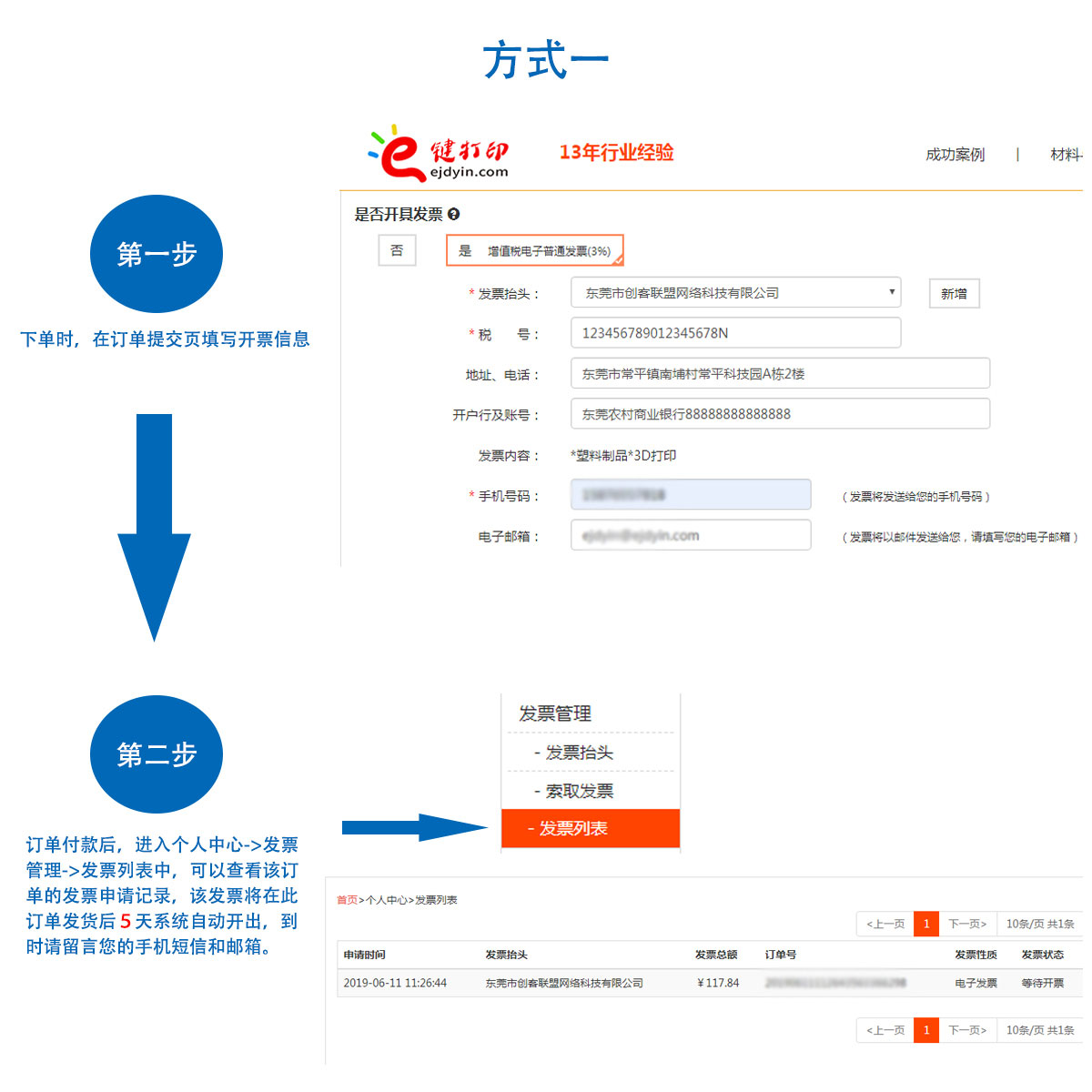 6)申請方法:a.下單時填寫開票信息即可,發票將在貨物發出5天后,發送到您的手機或郵箱; b.在“個人中心->發票管理”處填寫開票信息申請,申請后發票將發送到您的手機或郵箱。