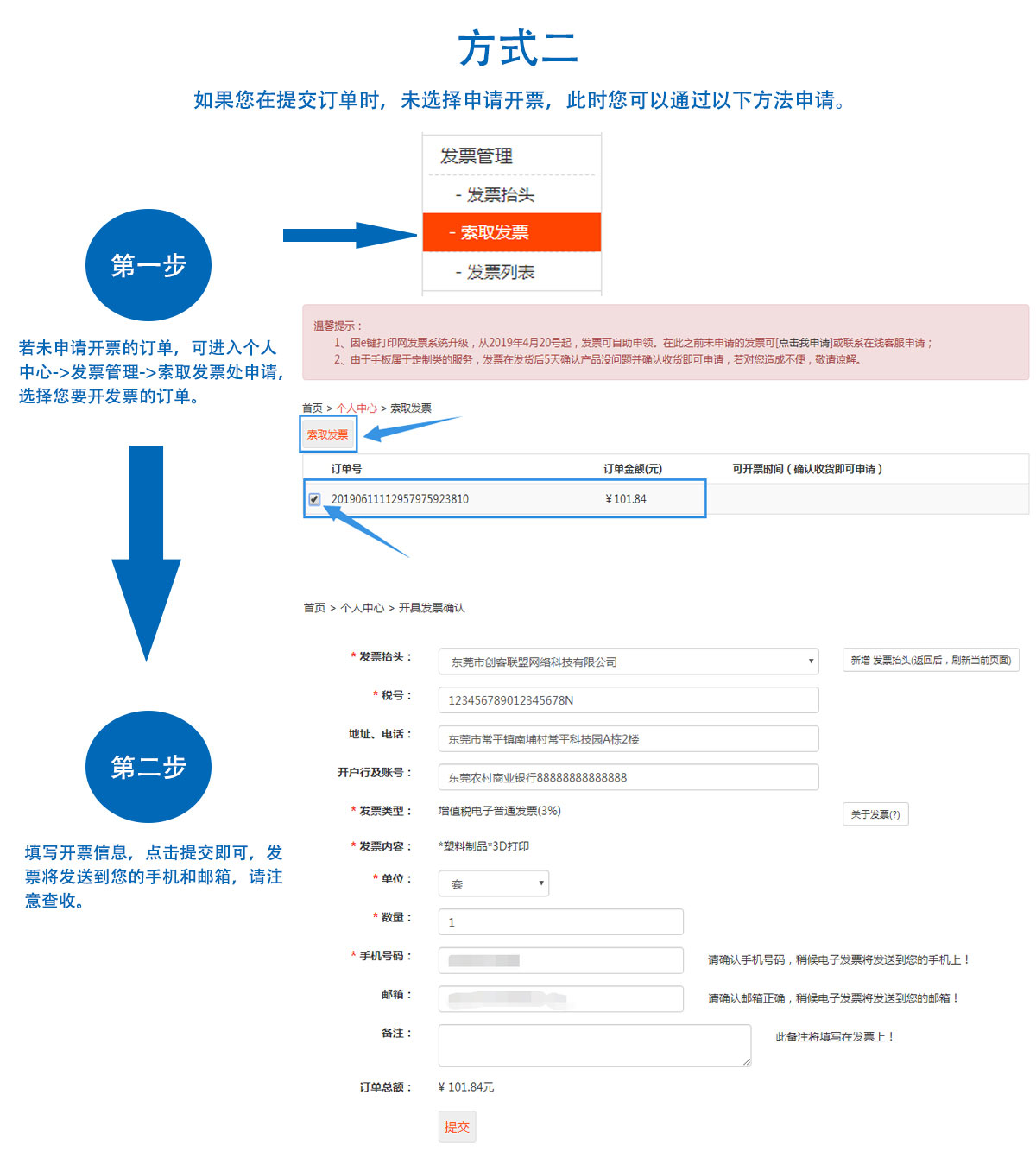 2)開具發票的金額以實際支付金額為準,稅費統一收取訂單金額的1%。