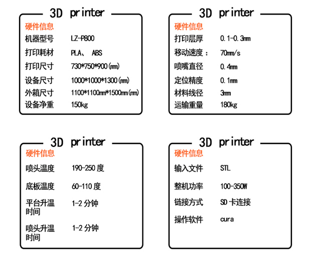 | 使用PLA工業級3D打印機 | 聚乳酸(PLA)是一種新型的生物降解材料,3D打印非常好的新手材料,便宜,耐用,環保,用于檢測工業設計檢測用。聚乳酸適用于吹塑、熱塑等各種加工方法。PLA塑料 價格低 強度高 環保材料。價格低,適合簡單模型,教學用。 | |